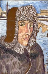 Self Portrait Stockholm 2004 oil and college on wood 16x12cm
